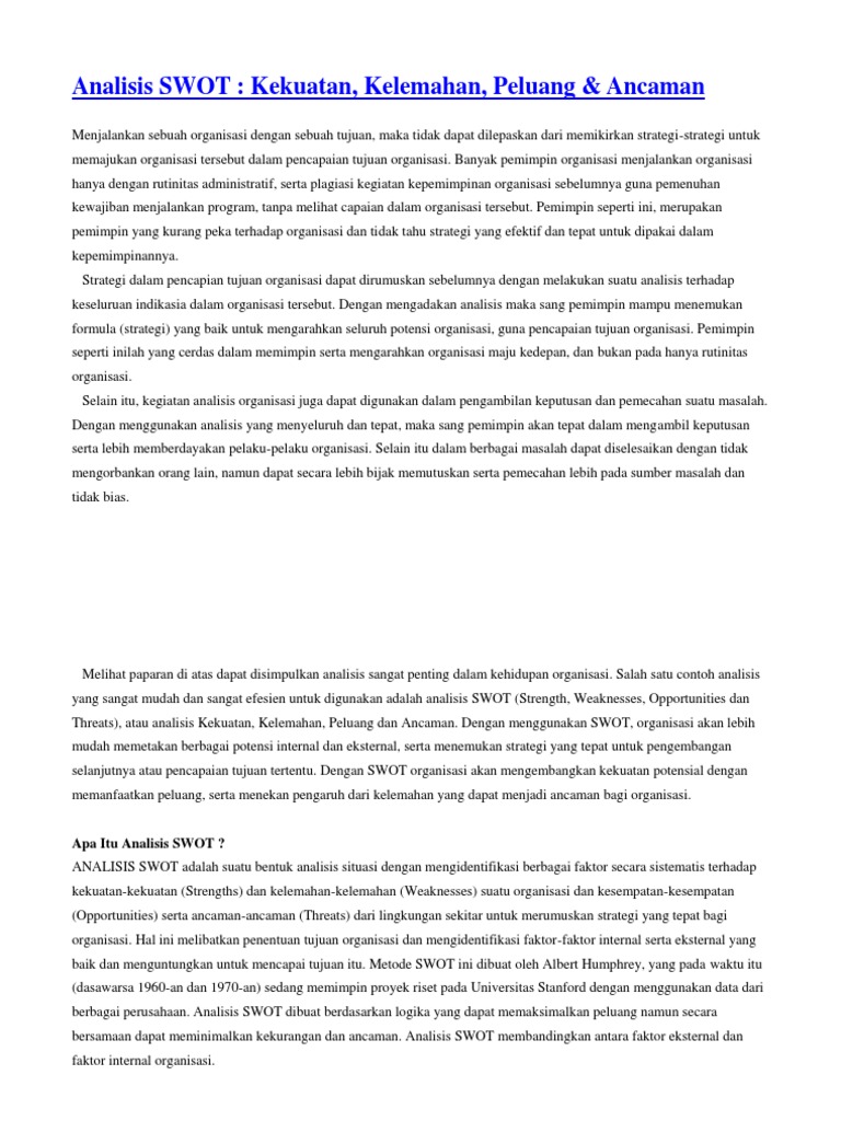 Analisis swot adalah apa yang dimaksudkan, perihalan, ciri ... from ms.public-welfare.com Maybe you would like to learn more about one of these? We did not find results for: Check spelling or type a new query.